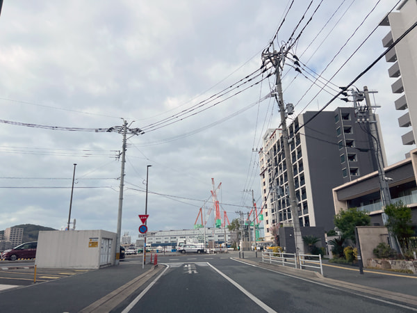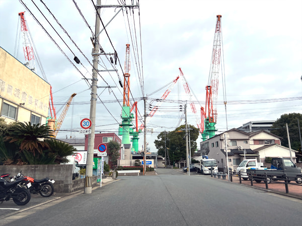 ⑧右折して直進すれば、すぐに右手に港の入口がある