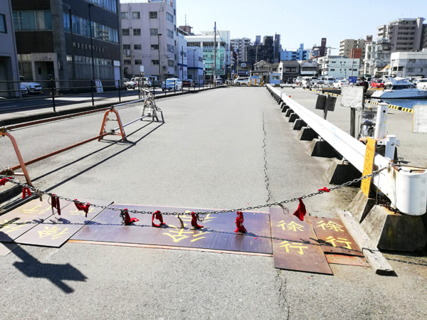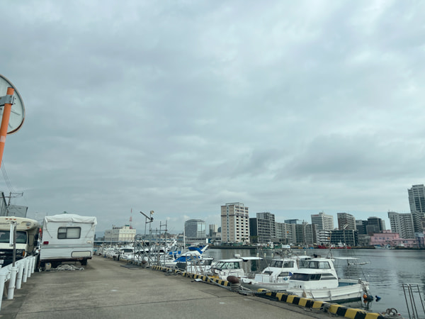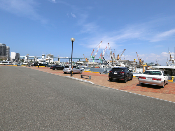 福岡都市高速環状線の天神北ICで降りてすぐの信号(須崎1号)を右折します。元祖長浜屋のある信号を右折して直進し、突き当たりを左折。九州製氷を過ぎてそのまま直進すると港の入口に到着します。夜間や早朝は自分でチェーンを外して入り、入ったあとは必ずチェーンを元に戻してください(日中は係員が駐在しています)。港の奥へ進むと、乗船場の目の前に無料の駐車場があります。