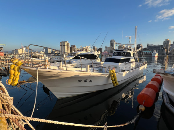 福岡都市高速環状線の天神北ICで降りてすぐの信号(須崎1号)を右折します。元祖長浜屋のある信号を右折して直進し、突き当たりを左折。かもめ広場前の交差点を右折して進み、道なりにカーブを右に曲がります。さらにその先の交差点を右折して直進すると、すぐに右手に港の入口があるので、そこから港内へ入ってください。中に入ってすぐを左折し、さらに左折して進みます。左手の車に注意しながら進んだすぐ先が玄龍丸の駐車場となります。